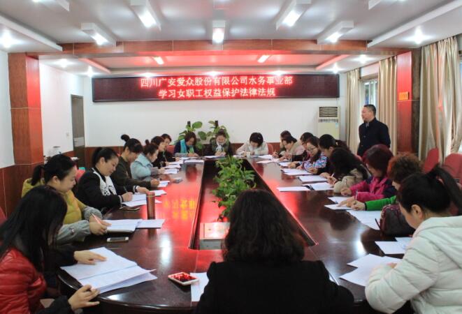 為促進(jìn)保護(hù)女職工權(quán)益法律法規(guī)的貫徹落實(shí),在“三八”婦女節(jié)即將來臨之際,水務(wù)事業(yè)部工會(huì)、女工委3月3日在三樓會(huì)議室組織女職工開展了女職工權(quán)益保護(hù)法律法規(guī)知識(shí)答題活動(dòng)。