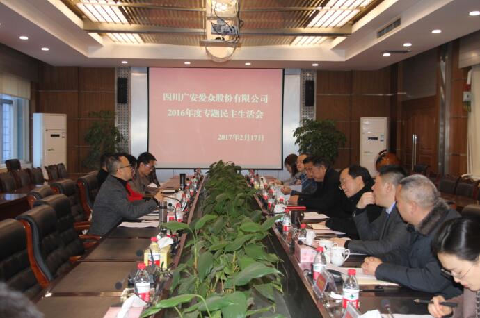 2月17日,愛眾股份公司在第一會議室召開專題民主生活會。公司在家領導參加會議。廣安區(qū)紀委、區(qū)委組織部有關領導到會指導。